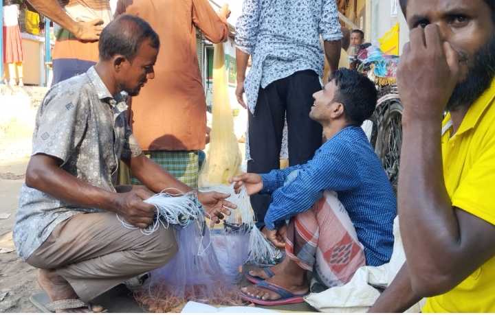 সরেজমিনে দেখা গেছে, মাছ ধরার নানা সাইজের ঝাকি, কোনা এবং চাক জাল ব্যবসায়ীরা ক্রেতাদের সঙ্গে দাম হাকিয়ে বেচাবিক্রি করছে। এ সময় নিষিদ্ধ কারেন্ট জাল ও বিক্রি করতে দেখা যায়। সাংবাদিকের উপস্থিতিতে ক্যামেরা দেখে অনেকে ব্যবসায়ী না বুঝে  ভয়ে স্থান ত্যাগ করে।