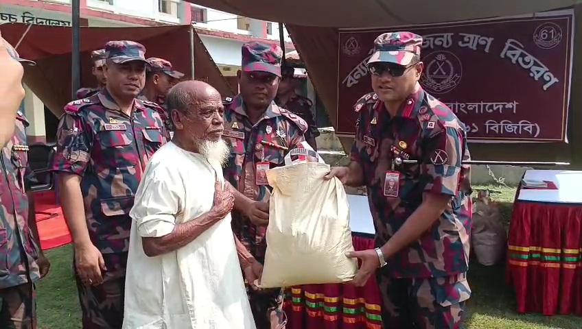 লালমনিরহাটের হাতীবান্ধায় বন্যার্তদের মাঝে ত্রান সামগ্রী বিতরণ ও বিনামূল্যে চিকিৎসা সেবা প্রদান করেছেন তিস্তা ব্যাটালিয়ন ৬১বিজিবি।